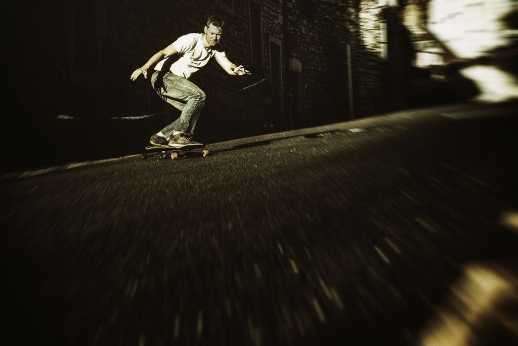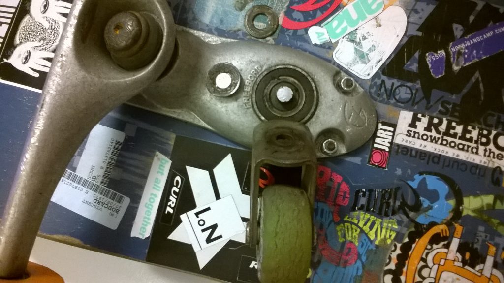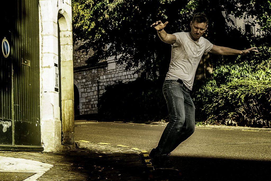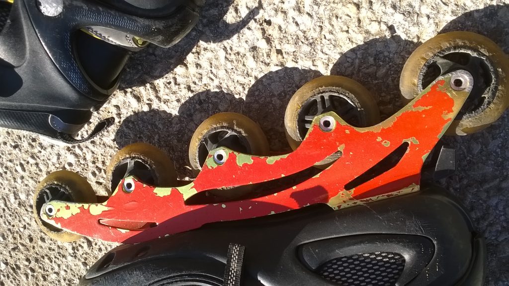 Plusieurs choses concernant le changement des roues, une modification de set-up de son matériel : Avec une usure prononcée des roues, je passe à une augmentation de près de 20% du poids de la planche, de roues usées jusqu’au noyau, à roues neuves et opulentes d’uréthane. Pour une planche de 6 kilos moyens, c’est plus de 500 grammes de modification sur la vélocité de la planche à l’usage, mais aussi lors de son portage. C’est là toute la différence, avec cet écart radical et sensible, le ressenti est présent avec un effort supplémentaire palpable. Cependant, les avantages sont nombreux car le glissement redevient meilleur, le shape, la forme des roues étant neuve et particulièrement homogène à l’usage. Avec donc la modification de toucher et de portage, dû au poids, la modification ressentie à la session engagée, est elle aussi bien différente. Alors la corrélation est géométrique, mais aussi massique, impliquant une appréhension sensiblement différente lors des premiers glissement afin de ne pas se laisser surprendre. Retrouver son plaisir en franchissant ce challenge de maîtrise à comprendre dans son mouvement !