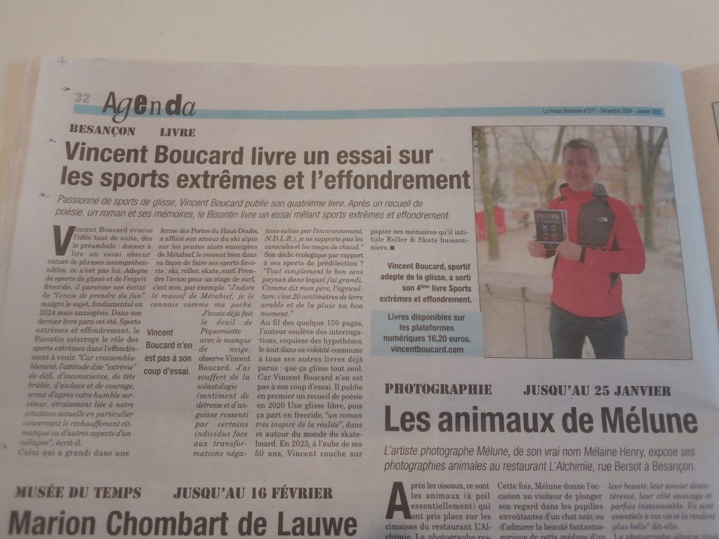 La sortie d’un nouveau livre, essai, titré initialement « Rôle connard des sports extrême dans l’effondrement à venir » bénéficie d’un titre moins punchy mais le propos n’en reste pas moins légitimé par un parcours résumé en 2 tranches de 25 années, l’apprentissage et l’expérience. Après un recueil de poésie, un roman, des mémoires, voici l’essai. Avec une montée en puissance de ces deux phénomènes de société, l’un mortel, l’autre également, à condition de ne pas faire d’erreur, la survie et le spectaculaire sont au rendez vous. Disponible au Lys Bleu éditions.